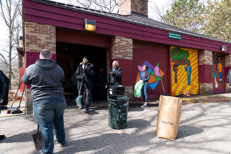 We picked up trash, applied mulch in the play spaces in our parks, painted playground equipment, and removed debris, and dumping of large items
